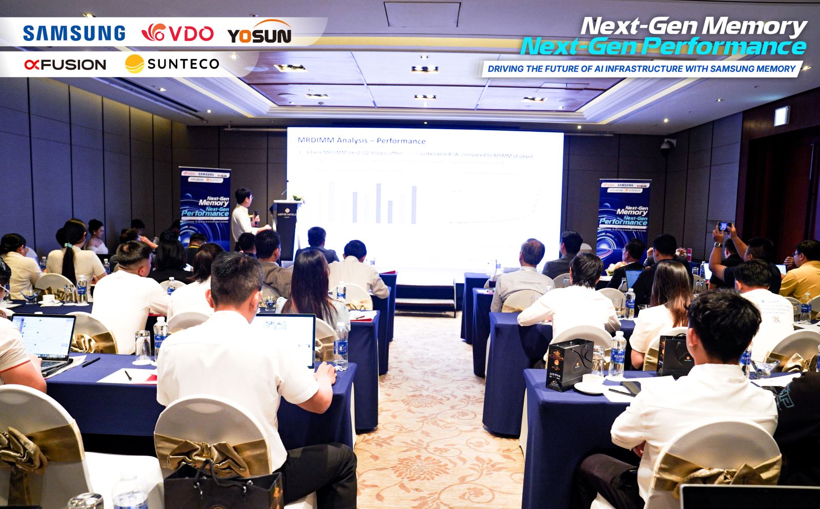 Sáng ngày 03/12/2025 tại Khách sạn Lotte Sài Gòn, Công ty Cổ phần VDO phối hợp cùng Samsung Electronics và Yosun Singapore tổ chức hội thảo “Next-Gen Memory, Next-Gen Performance – Driving the Future of AI Infrastructure with Samsung Memory”.